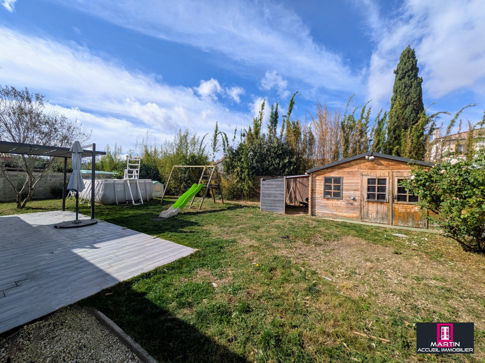 Implantée sur une parcelle d'environ 540m², l'espace extérieur avec piscine hors-sol et chalet bois est intime, sans vis-à-vis.